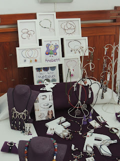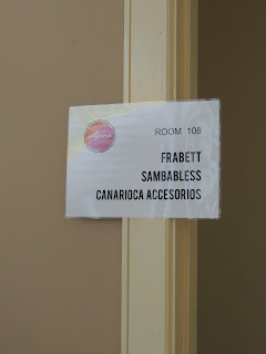 La siguiente habitación es la 108, aquí encontramos tres marcas muy diferentes. Samba Bless (SambaBless), su principal producto son las cholas, pero olvídate de los clichés porque Cassia, su diseñadora, es pura creación: desde estampación con temas canarios a cholas con forma cuadra. En el Aguere ha presentado también una colección de bolsos y neceseres…y ésto es el principio. Canarioca Accesorios (Canarioca), su descripción lo dice todo: corazón canario, alma carioca. Esta brasileña es puro color en toda su bisutería, confeccionada con lana y piedras, y combinaciones preciosas de colores. Y Frabett (Frabett), dedicados a los accesorios y complementos para mujer, hombre y niños. Usan una aleación de metales que no oxida llamada Zamak, y unos diseños muy modernos y coloridos.