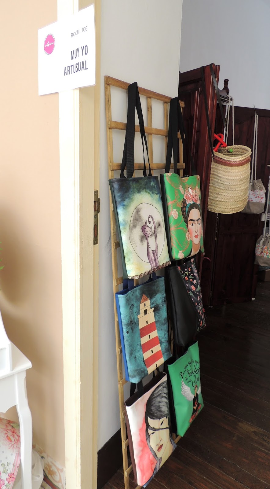 Seguimos con el repaso a las habitaciones que nos quedan, y es el turno de la 106, donde encontramos dos marcas: Muy Yo (MuyYo), capitaneada por Jesica Lentini y que se dedica sobre todo a los bolsos y bisutería, siempre con un toque étnico. Y Artusual (Artusual), que también elabora esos mismos productos pero desde otro punto de vista más artístico. Nisamar Gónzalez es la ilustradora y parte creadora de estos objetos de moda tan especiales.