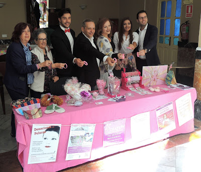 | Efraín Medina junto con los organizadores del evento apoyando a ÁMATE, Asociación que apoya a las mujeres con cáncer de mama. |