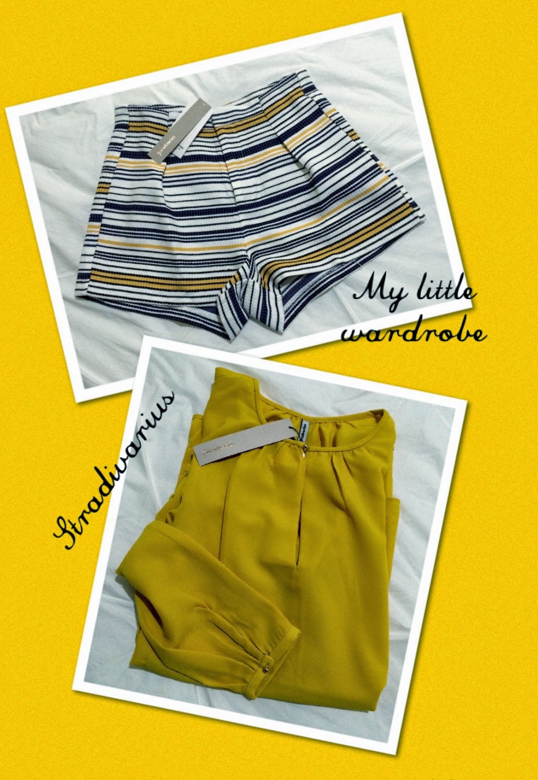 Un pantalón corto a rayas y una blusa color mostaza.