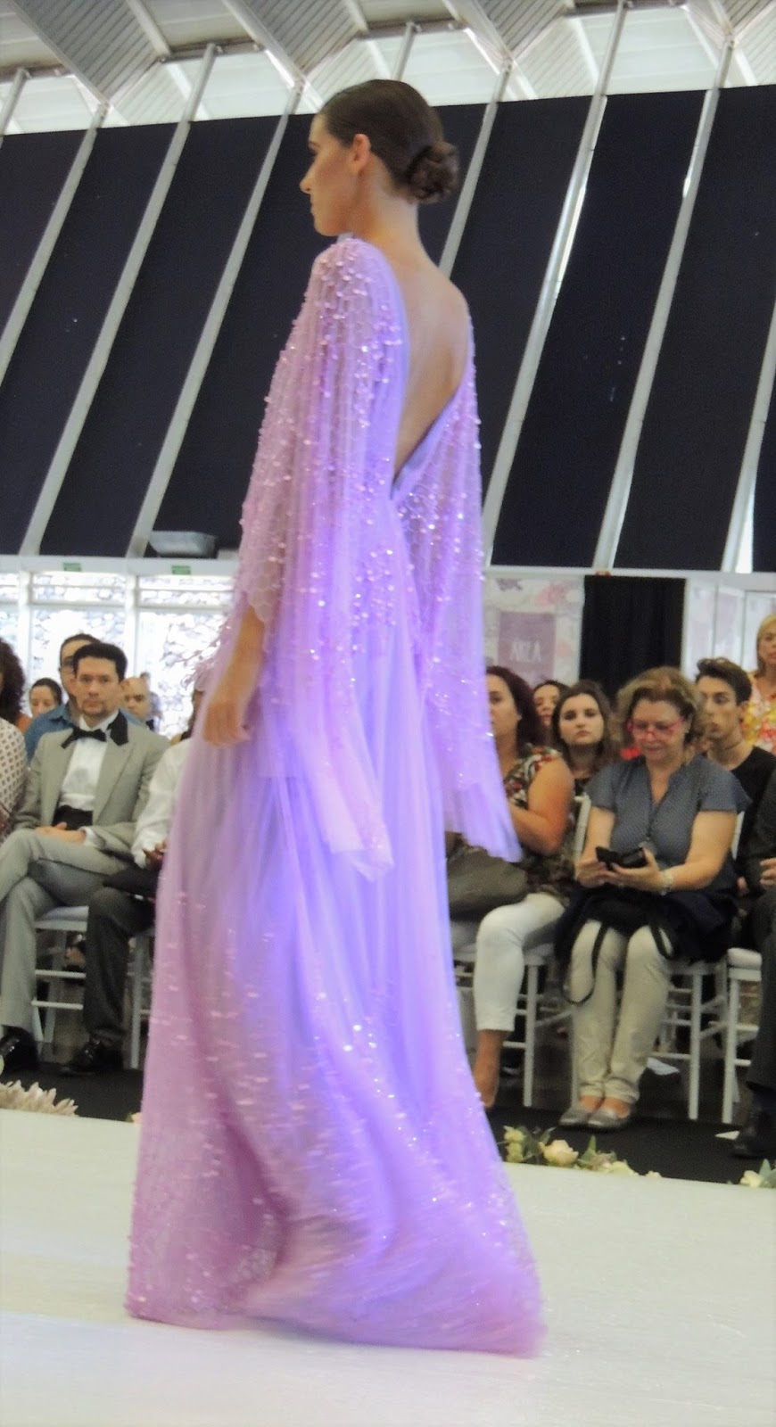 Vimos vestidos blancos, por supuesto, pero también se subieron a la pasarela distintas tonalidades del lila o rosa.