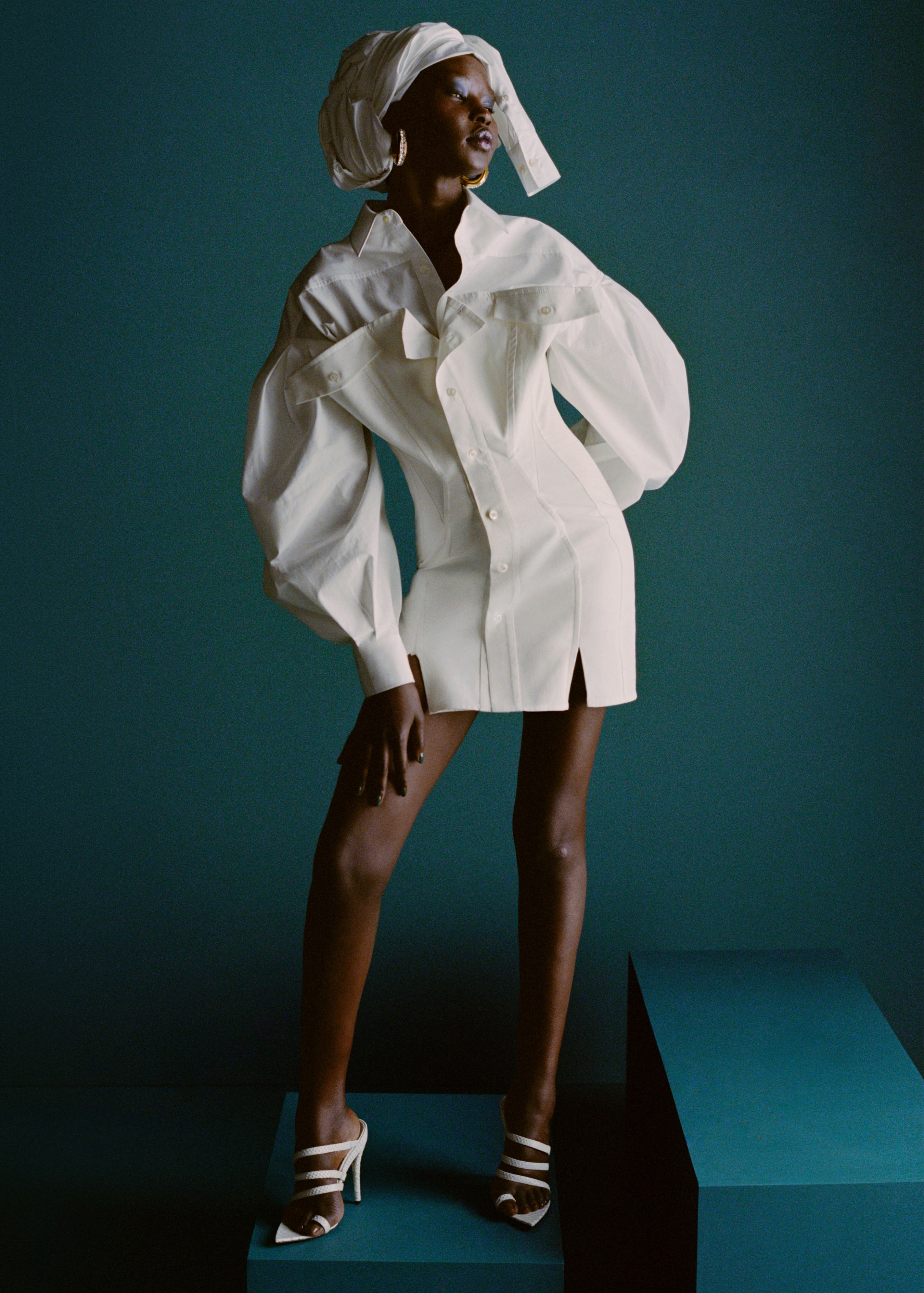 Hasta que el 22 de mayo se hizo la presentación oficial en París, con la presencia de la cantante, vestida con una de sus prendas: un vestido-chaqueta XL en blanco (foto de arriba).