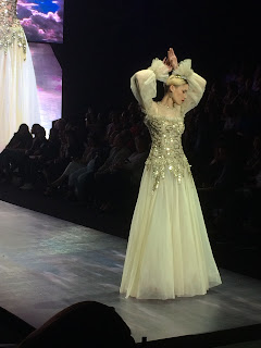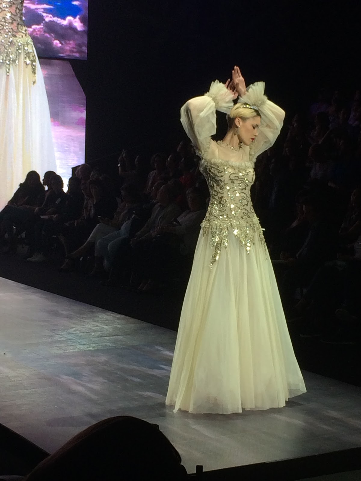 Utilizó tejidos como encajes, payés, tules y sedas mezclados con bordados y brillos.
