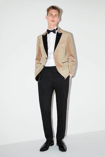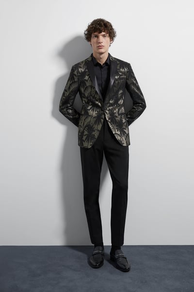 Tienes el smoking clásico o puedes divertirte con otros colores o estampados. No te cierres a nada, y cuando estés en la tienda, pruébate lo que te guste o te llame la atención, aunque a primeras pienses que no te quedará bien, te vas a sorprender. Yo huiría de lo clásico, de eso habrá un montón a donde quiera que vayas. Puedes probar, por ejemplo, con el terciopelo, una tendencia muy fuerte y que encontrarás en colores variados, desde el azul noche al mostaza intenso.