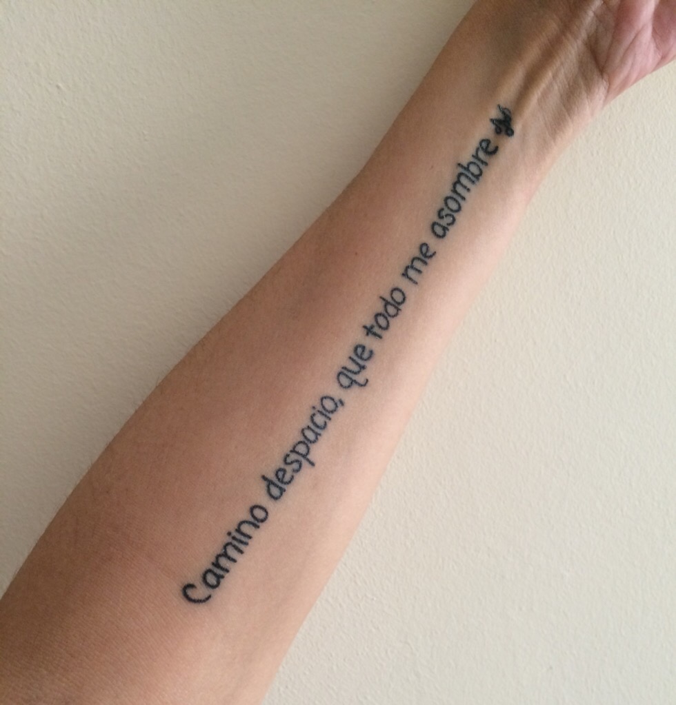 Como dice Alejandro Sanz, y llevo tatuado en mi piel: «Camino despacio, que todo me asombre».