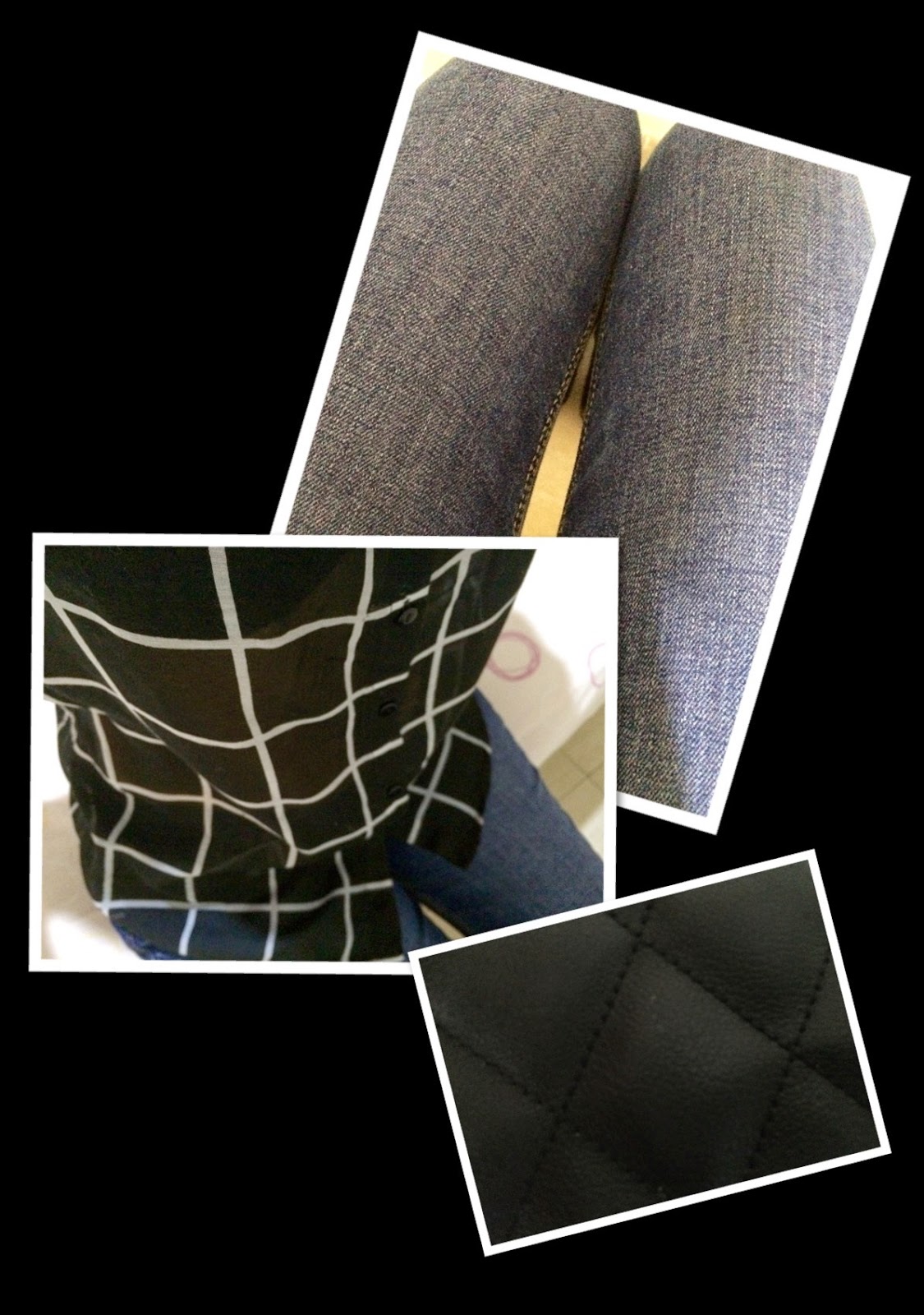 En esta foto pueden apreciar el tejido del Jeans, de la Camisa y del Clutch.