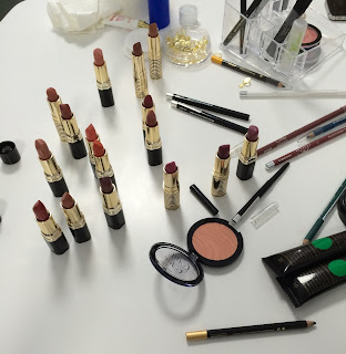 También toqueteamos lápices de ojos, labiales, coloretes….