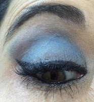 El pasado viernes tenía una boda de día, que duraría hasta que el cuerpo aguantase, y me decidí a probar algunas de estas sombras. En concreto, usé los tres tonos de azul ya que el fondo de mi vestido era de este color.