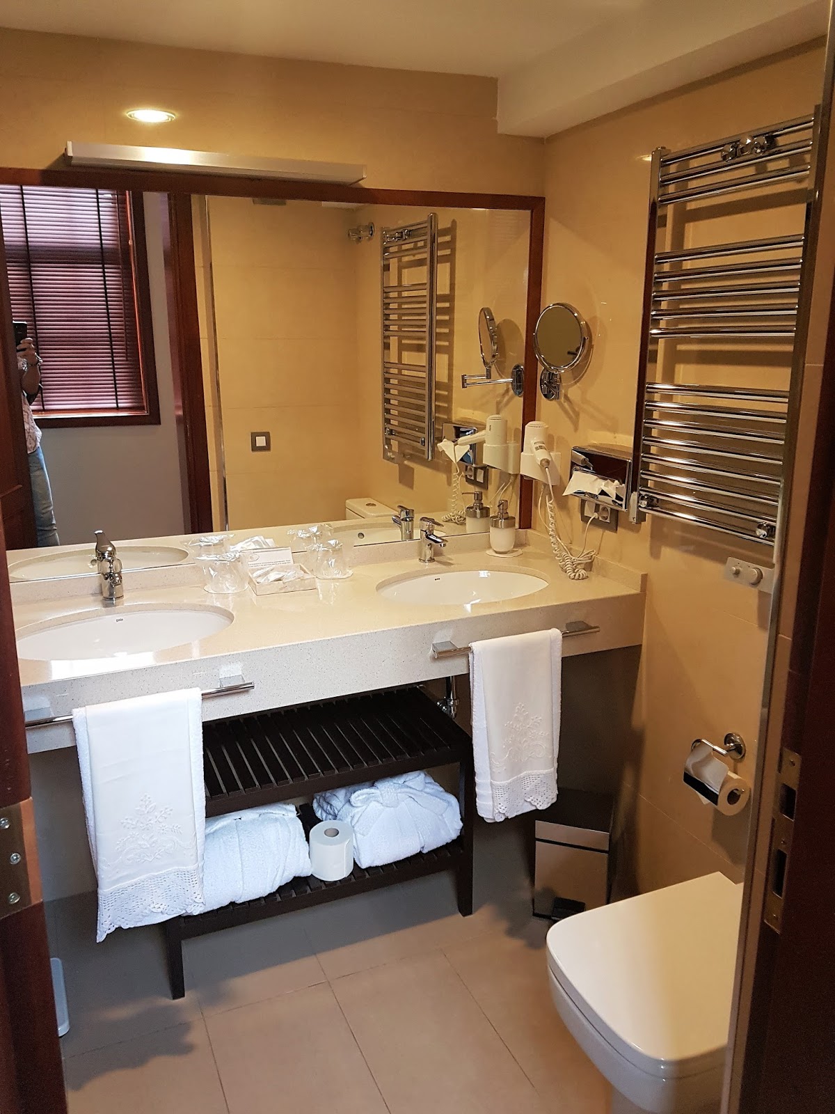 Como podéis ver esta suite, llamada «El Puerto», consta de un salón-comedor, cocina, sala de estar en alto (con sofá-cama), un baño y dos habitaciones, una de matrimonio y otra con dos camas individuales. Todo ello conectado por un pasillo, que no se ve en las fotos, y del cual se accede a cada una de las estancias de la suite. Fiaros de mi palabra que es todo un lujo. Y un lujo al alcance de la mano ya que sus precios nada tienen que ver con los que estamos acostumbrados en un hotel de 5 estrellas en el sur de la isla por ejemplo.