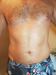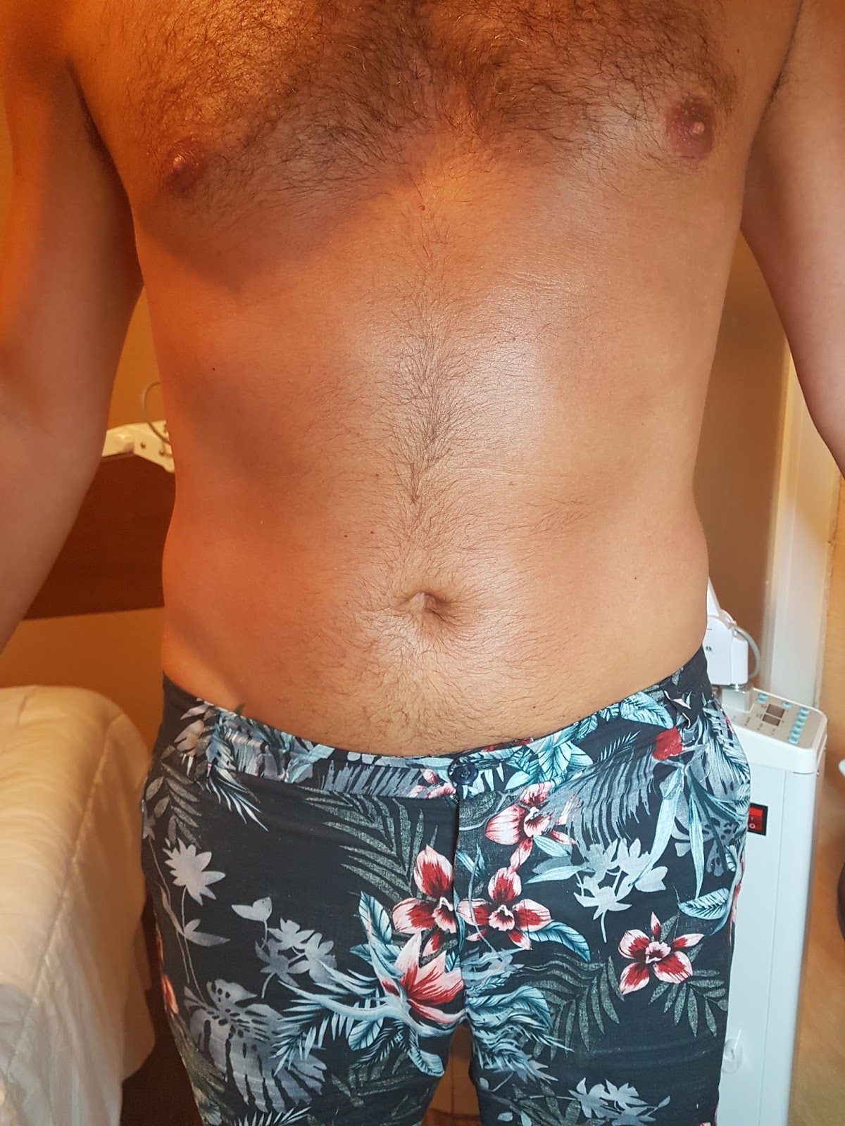 Y aquí tenéis las fotos del antes y el después que os había comentado al principio. Si os fijáis en los laterales, se nota una reducción, sobre todo en el lado derecho. Me parece espectacular que uno pueda comprobar el efecto desde la primera sesión ¿verdad?. En mi caso puedo decir que salí de allí muy contento y con la intención de hacerme el tratamiento recomendado.