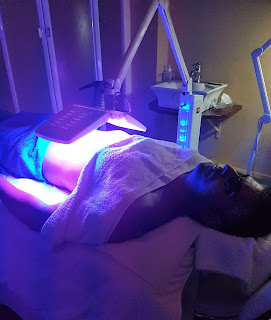 Como se ve claramente en las imágenes, me puso sobre la zona esa lampara led y durante 20 minutos estuvo actuando sobre mi piel, potenciando aún más los principios activos de las cremas. Fueron dos luces distintas, primero una intermitente, duarnte 10 minutos, y la otra mitad del tiempo una fija. Os comento para que lo sepáis, que no es doloroso, solo se siente calor.
